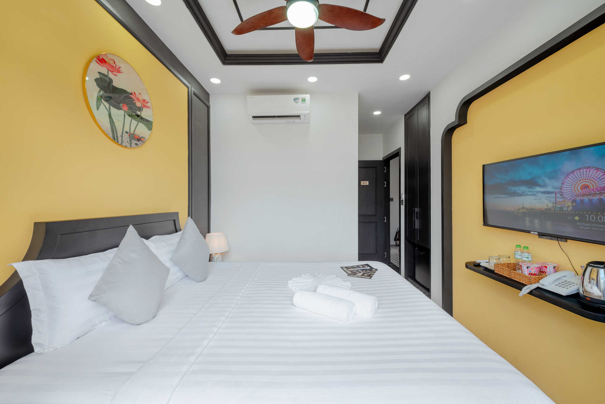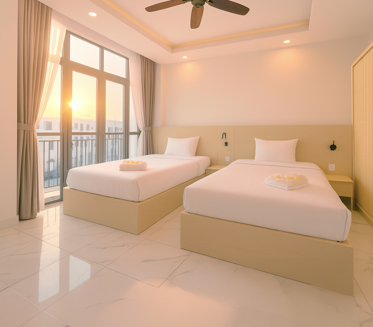 Tọa lạc tại trung tâm Grand World Phú Quốc, phòng nghỉ thuộc Le Palmier đưa bạn chạm đến một góc trời thanh lịch giữa phố đảo rực rỡ. Gam màu dịu dàng, ánh sáng ấm áp và không gian tinh tế tạo nên khoảnh khắc lưu trú đầy thi vị cho bạn.